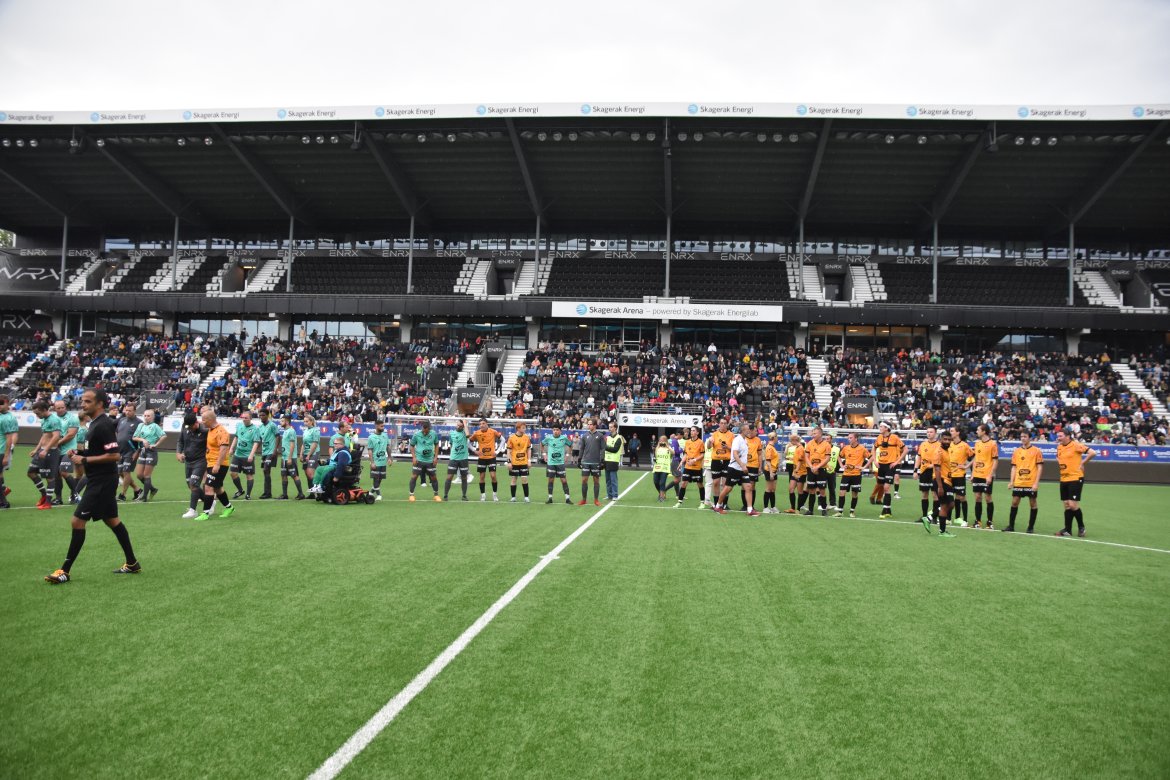 Lørdag ettermiddag var det show, kaos og veldedighet på Skagerak Arena.