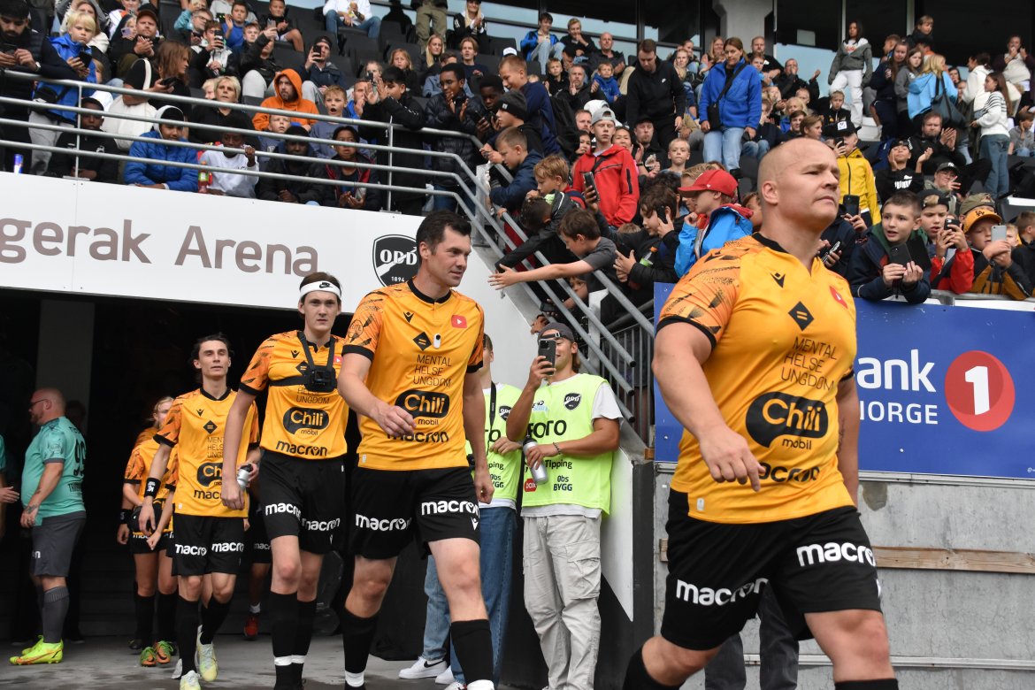 Det ble liv og røre på stadion da YouTubere og TikTokere fra hele landet samlet seg til en veldedighetskamp i Skien lørdag formiddag. Det var varierende fotballferdigheter, men underholdningen var stor for de fremmøtte. Tidligere Odd-trener Tom Nordlie var trener for TikTok-laget. Petter Belsvik var trener for YouTube-laget.