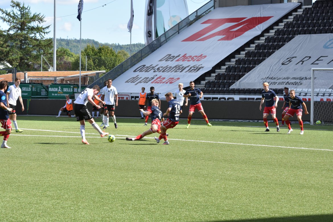 Sola skinte på Skagerak Arena og det var tid for Odd 2-kamp dagen etter at Odd vant 2-1 over Rosenborg i Eliteserien. Odd 2 startet med disse elleve: Egil Selvik, Kevin Egell-Johnsen, Eirik Asante, Bjørn Mæland, Thomas Hallstensen, Syver Aas, Fredrik Nordkvelle, Filip Jørgensen, Kachi, Bilal Njie og Marius Larsen.
