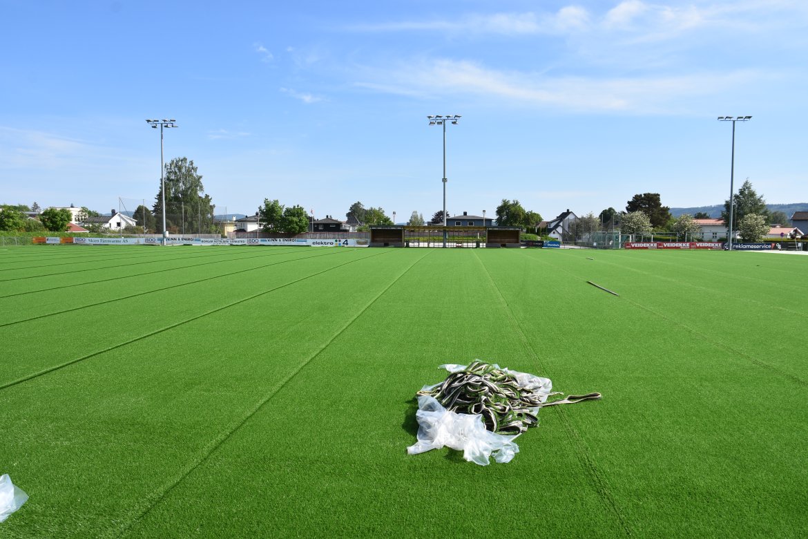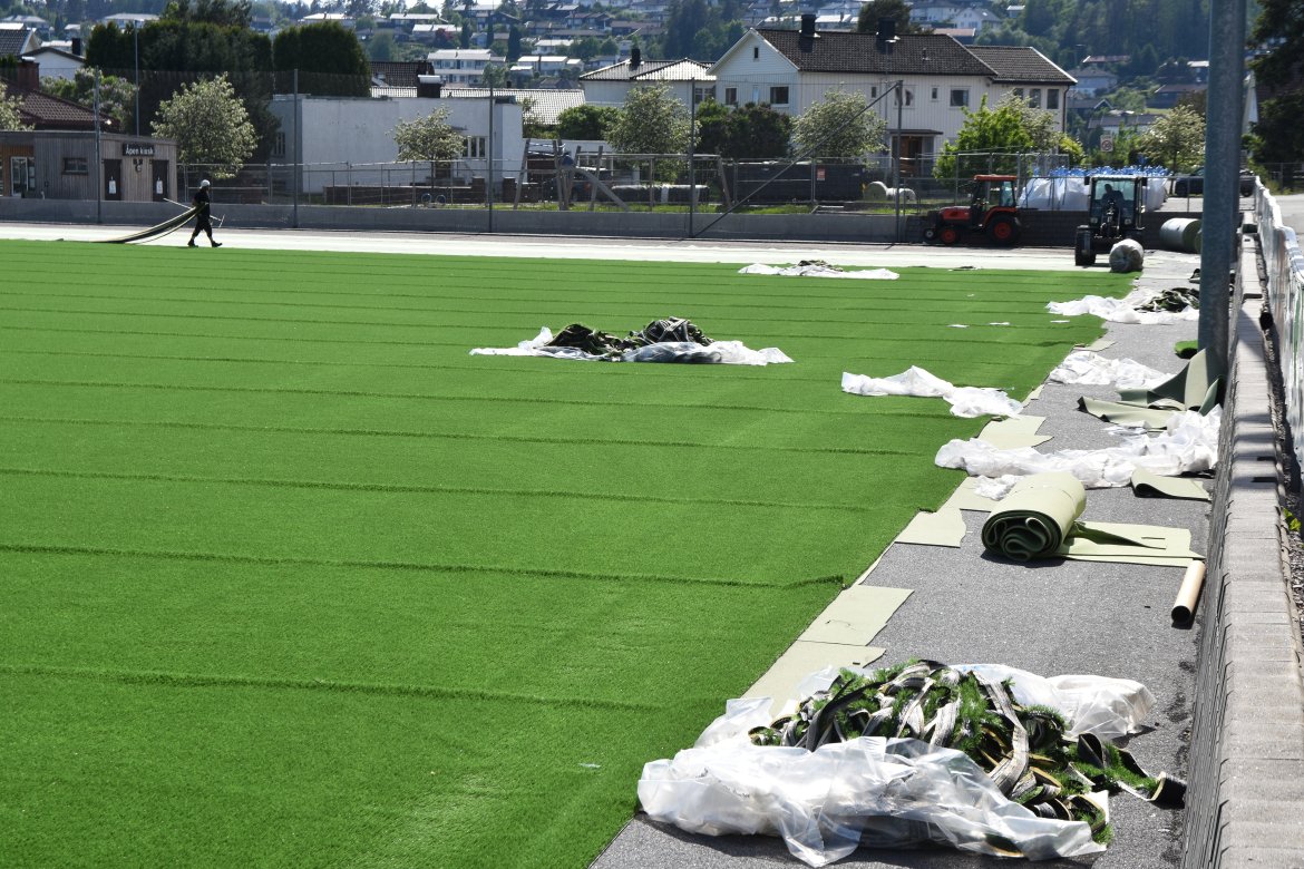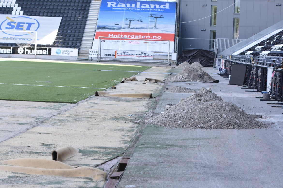 Her kan du se bilder fra utskiftningen av kunstgresset på Skagerak Arena Bildegalleri